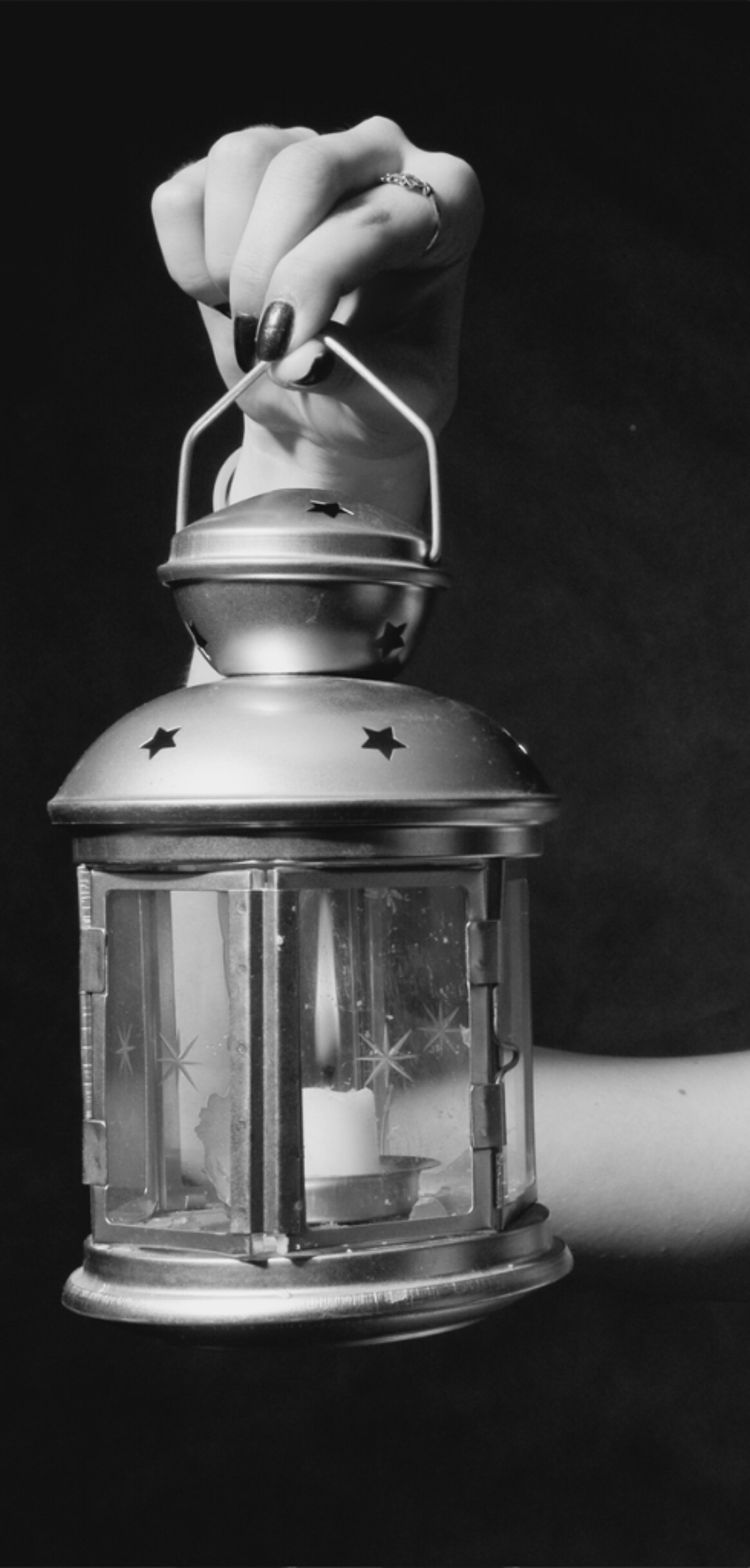 Mulheres surgem com lamparinas nas mãos — pequenas chamas que tremem, como corações à procura de si mesmas.