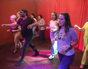 Cada estilo é ensinado com atenção ao tempo de cada aluno, respeitando o processo individual e priorizando a conexão entre os corpos, o prazer de dançar e a fluidez do movimento.