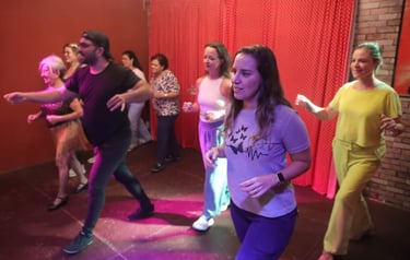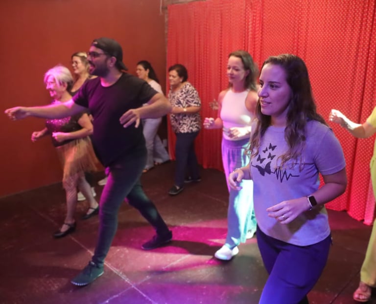 As aulas são acolhedoras, inclusivas e pensadas para que qualquer pessoa possa participar, mesmo que nunca tenha dançado antes.