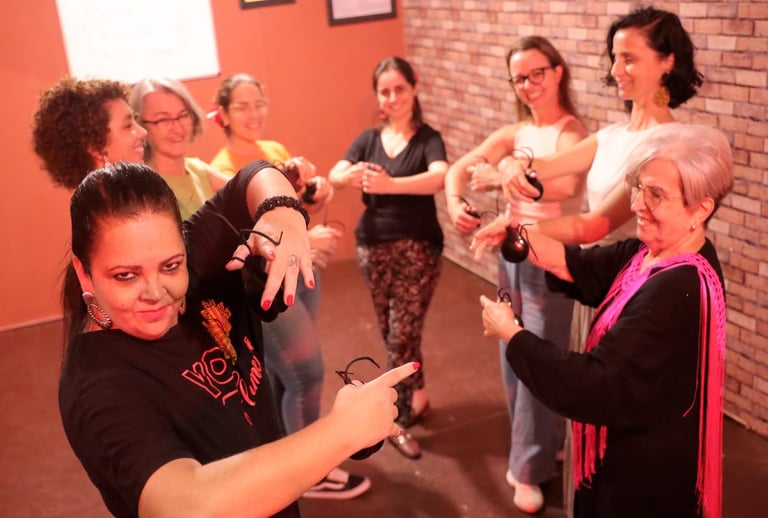 Há mais de 15 anos, construímos uma comunidade que transcende o aprendizado técnico: é um espaço de encontro entre tradição e inovação, onde a emoção do flamenco, a energia dos ritmos latinos e a força da percussão se unem para criar experiências transformadoras.