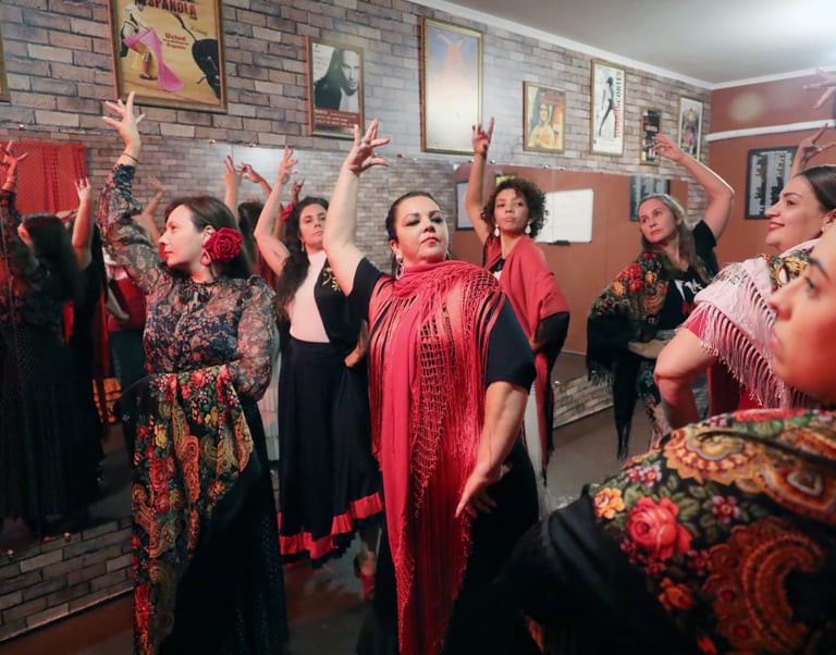 O Núcleo de Arte Flamenca e Latina Flávia Piquera é um centro cultural vibrante, dedicado à celebração e difusão da riqueza hispânica e latino-americana através da dança, música e arte.